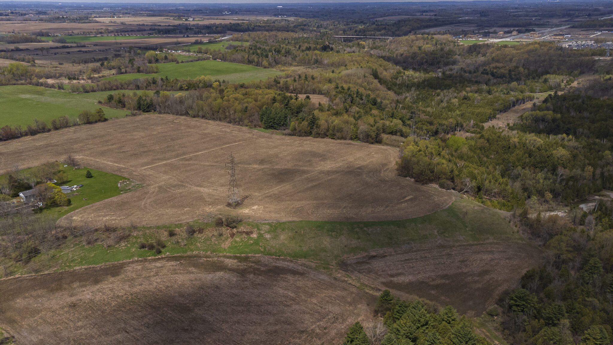 In 1972, the federal Government acquired this 75 km2 (18,600 acres) parcel of land to develop a new international airport for Toronto. Amid backlash from citizens, the government put this plan on hold in 1975 and focused its efforts on expanding Toronto Pearson International Airport and leasing the Pickering properties to residents and farmers.